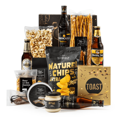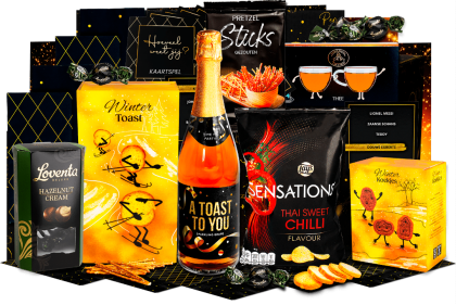 Inhoud Rode wijn Domaine Boyar, 0,75 ltr Hertog Jan bier, 33 cl, 2 st Fruitkoek, 80 gr Pretzelsticks XXL, 200 gr Toast, 100 gr Milky Cream bonbons, 66 gr Mars Single, 51 gr Pepsi Max, 33 cl, 2 st Kip Ragout, 300 gr Suikerwafel, 55 gr Fortuin Wilhelmina pepermunt, 65 gr Lay's chips Thai Sweet Chili, 40 gr Speculoos koekjes, 25 gr Ribbelchips Zout, 90 gr Pannenkoekenmix, 180 gr Kaaspuntjes, 125 gr Waffle bar chocolate, 50 gr Karamel stroop, 110 gr Dutch diamond stroopwafel, 64 gr, 4 st Kaaskoekjes, 60 gr Fudge kaneel, 150 gr Karamelsticks, 50 gr Appeltaartmix Gezouten Pinda's, 100 gr Galetten wafel, 33 gr Serrano ham, 50 gr Knapperige wafel hazelnoot, 60 gr Twix single, 50 gr Salted caramel fingers Mix Pretzels, 200 gr Boter wafels, 30 gr Gezouten Pinda's, 100 gr Long chips grilled, 75 gr Mini bouchee's, 66 gr Mueslirepen 2 stuks Pretzelsticks, 40 gr Duimpjes omhoog chocolade, 90 gr Triple Chocolate Chip cookie, 150 gr Haribo Goudberen, 10 gr Lonka soft nougat caramel, 10 gr, 3st Kerstkaart met feestelijke opdruk 'Happy Holidays' Verpakt in een feestelijke geschenkdoos 39 x 29 x 30 cm