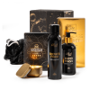 Inhoud Showerfoam, 150 ml Handwash, 250 ml Goudkleurige kaars met deksel, 5 x 5 cm Puffspons zwart Sneeuwballen, 60 gram Verpakt in een feestelijke geschenkdoos, 200 x 150 x 120 mm