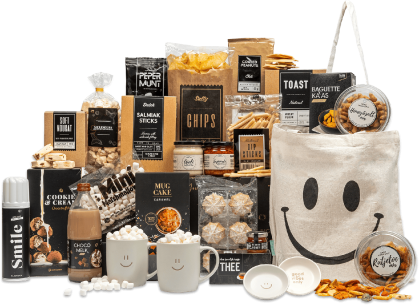 Maatwerk kerstpakketten mogelijk Veilig Achteraf Betalen Plan een showroomafspraak Veelzijdig assortiment kerstpakketten