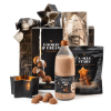 Inhoud Xmas theelichthouder in stervorm, 11 x 6,5 cm, 2 st Theelichten in zwart organza zak, 8 st Chocomelk, 500 ml Sterretjeskoek, 85 gram Meringue mokka-hazelnoot scooped, 48 gram Cookie & Cream choco truffels, 100 gram Verpakt in een feestelijke geschenkdoos, 310 x 200 x 100 mm