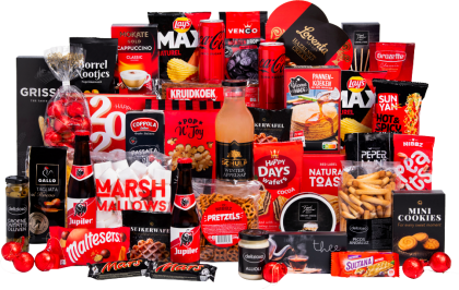 Inhoud Kaartspel "Weet jij het?" Rode wijn, Tempranillo, 0,75 ltr Bier, Amstel, 0,33 ltr Hartige zoutjes peper-zeezout, 60 gram Pretzels, 40 gram Kruidcake in a cup, 280 gram Koekreep, 110 gram Chocolade hazelnoot pralines, 110 gram Popcorn, 70 gram Pinda's gezouten, 50 gram Stroopwafel, 64 gram, 2 st Kitkat, 41,5 gram Haribo happy cola, 75 gram Pringles original, 40 gram Lay's chips naturel, 100 gram Doritos bits twisties honey BBQ, 30 gram Maltesers, 37 gram Kerstkoekjes, 80 gram Verpakt in een feestelijke geschenkdoos, 39 x 29 x 12,6 cm