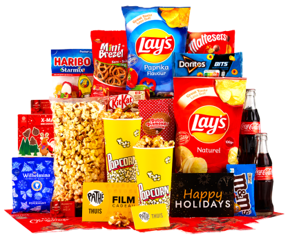 Inhoud Dartbord met scoretelling Dartpijlen, 14 gram, 6 st Markeerstift Coca Cola fles, 20 cl, 2 st Lay's Naturel chips, 100 gram Redband Drop Fruit duo's zakjes 100 Kitkat reep, 41,5 gram, 2 st Mars reep, 51 gram Lay's Chips Paprika, 85 gram Bolletje Zoute Pepsels, 180 gram Haribo Happy Cola, 75 gram Doritos Bits twisties Honey BBQ, 30 gram, 2 st Duyvis gezouten pinda's, 60 gram Pepsi original, 33 cl Maltesers, 37 gram Oreo koek, 66 gram Doritos Bits Zero's sweet paprika 30, 2 st Skittles Fruit, 45 gram Speculoos koekjes, 25 gram Kerst chocolade, 40 gram Fortuin Wilhelmina pepermunt, 65 gram Côte d'or mini, 10 gram, 2 st Kerstkaart met feestelijke opdruk 'Happy Holidays' Verpakt in feestelijke geschenkdoos