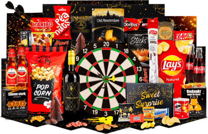 Inhoud Etagere Ø, 20 cm Kaartspel "Weet jij het?" Rode wijn, Tempranillo, 0,75 ltr Bier, Steenberge, 0,25 ltr Richello's chocolade, 100 gr, 8 st Servetten, 8 st Hartige zoutjes peper-zeezout, 60 gram Pretzels, 40 gram Popcorn, 70 gram Pinda's gezouten, 50 gram Haribo goudbeertjes, 75 gram Chips Lay's sensations thai sweet chilli, 40 gram Kerstkoekjes, 80 gram Verpakt in een feestelijke geschenkdoos, 39 x 29 x 12,6 cm
