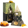 Inhoud Groene thee, 10 zakjes Fudge, 150 gram Kerstballen melkchocolade, 100 gram Tulband cake duo choco vanille, 350 gram Verpakt in een feestelijke geschenkdoos