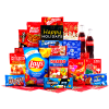Inhoud Coca cola fles, 20 cl, 2 st Redband Drop Fruit duo's zakjes, 100 gram Maltesers, 37 gram Haribo Happy Cola, 75 gram Kerst chocolade, 40 gram M&M Crispy zakje, 36 gram Doritos Bits twisties Honey BBQ, 30 gram Kitkat reep, 41,5 gram Dunicec mini brezel poppy, 70 gram Haribo Starmix, 75 gram Speculoos koekjes, 25 gram Doritos Bits Zero's sweet paprika, 30 gram Lay's Paprika chips, 100 gram Choco Prince Vanille, 28,5 gram, 2 st Fortuin Wilhelmina pepermunt, 65 gram Oreo koek, 66 gram Côte d'or mini, 10 gram, 2 st Kerstkaart met feestelijke opdruk 'Happy Holidays' Verpakt in een feestelijke geschenkdoos, 31 x 20 x 14 cm