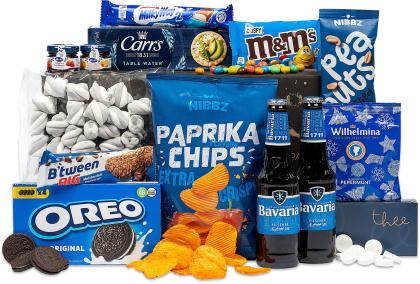 Inhoud Geschenkdoos met strik, 21 x 8,5 x 4 cm Dinerkaarsen, 20 cm, 2 st Waxines, 4 st Rode wijn, Tempranillo, 0,75 ltr Bier, Hertog Jan, 0,30 ltr Hartige zoutjes peper-zeezout, 60 gram Stroopwafel, 64 gram, 2 st Ribbelchips, 90 gram Kerstkoekjes, 80 gram Verpakt in een feestelijke geschenkdoos, 31 x 20 x 14 cm
