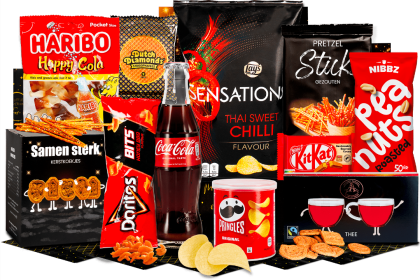 Inhoud Steenberge Premium Pilsener, 25 cl, 2 st Sparkling appelsap, 750 ml Kaaspuntjes, 125 gram Pretzels XXL, 200 gram Ribbelchips zout, 90 gram Zwarte thee, 10 zakjes Gezouten pinda's, 100 gram Pannenkoekenmix, 180 gram Grissini broodstengels, 125 gram Toast, 100 gram Haverkoeken, 135 gram Koekreep, 90 gram Marshmallows, 140 gram Cappuccino, 100 gram Twix, 50 gram Haribo Goudbeertjes, 75 gram Stroopwafel duopak, 64 gram Anta Flu drop menthol, 80 gram Truffels karamel&zeezout, 100 gram Tagliata ei, 250 gram Popcorn zoet, 50 gram Gratis kaart met eindejaarspuzzel Verpakt in een feestelijke geschenkdoos, 390 x 290 x 200 mm