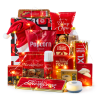 Inhoud Uitschuifbare lichtketting, 8 mtr Kerstmuts Chocomelk, 500 ml Slagroom, 250 gram Sneeuwballen, 60 gram Koekreep, 90 gram XXL chocoladereep met rozijnen en pinda, 225 gram Fudge speculaas, 110 gram Marshmallows boompjes, 125 gram Ribbelchips zout, 150 gram XXL pretzelsticks, 200 gram Toast, 100 gram Kaaspuntjes, 125 gram Popcorn zout, 125 gram Verpakt in een feestelijke geschenkdoos, 390 x 290 x 177 mm
