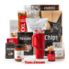 Inhoud Trendy geïsoleerde rode thermos beker met handvat en rietje, 800 ml Chips Handcooked chips salt, 125 gram XXL pretzelsticks, 200 gram Muesli, 250 gram Kruidkoek, 145 gram Pancake mix, 250 gram Aardbei jam, 230 gram Tomatensoep, 450 ml Bosvruchten thee, 30 gram Koekjes triple chocolate, 150 gram Toblerone white choco honey & almond, 100 gram Popcorn zout, 125 gram Mint en drop ballen, 100 gram Marshmallows vanille, 150 gram Verpakt in een feestelijke geschenkdoos, 390 x 290 x 130 mm