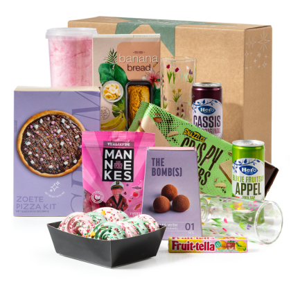 Inhoud Coca cola regular fles, 0,2 ltr Zwarte thee, 5 st Pretzels, 40 gram Pinda's gezouten, 50 gram Stroopwafel, 64 gram, 2 st Kitkat, 41,5 gram Haribo happy cola, 75 gram Pringles original, 40 gram Chips Lay's sensations thai sweet chilli, 40 gram Doritos bits twisties honey BBQ, 30 gram Kerstkoekjes, 80 gram Verpakt in een feestelijke geschenkdoos, 31 x 20 x 14 cm