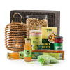 Inhoud Lantaarn naturel riet, 19 x 23 cm Tien theelichten in organza zakje Schulp Bio appelsap, à, 200 ml, 2 st Gepofte spelt, 100 gram Rijstwafels, 100 gram Halva vruchtenjam aardbei, 320 gram Ontbijtkoek Bio, 140 gram Tarwe pannenkoekenmix, 300 gram Verpakt in een feestelijke geschenkdoos, 390 x 290 x 200 mm