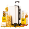Inhoud Handbagage koffer/trolley 20 inch, 38 ltr, 55 x 35 x 21 cm Gezouten Pinda's, 100 gram Popcorn zoet, 100 gram Dutch diamond stroopwafel duopack, 64 gram, 2 st Ribbelchips, 90 gram Pretzelsticks XXL, 200 gram Party Toast, 100 gram Pindamix karamel, 50 gram Kaaspuntjes, 125 gram Chocolade kerstbal, 150 gram twix single, 50 gram Lonka Nougat caramel, 12 gram, 2 st Kerstkaart met feestelijke opdruk 'Happy Holidays' Verpakt in een feestelijke geschenkdoos, 58 x 24 x 24 cm