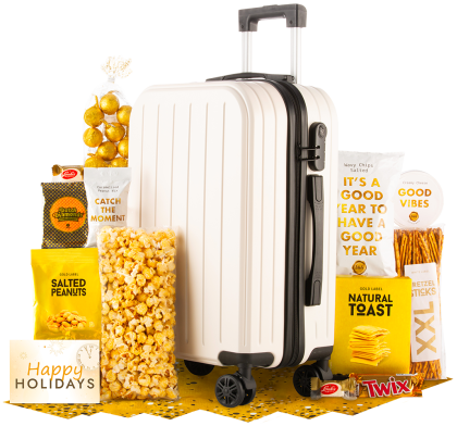 Inhoud Luxe fleeceplaid/ dekentje, 170 x 130 cm Geschenkdoos met strik, 21 x 8,5 x 4 cm Dinerkaarsen, 20 cm, 2 st Waxines, 4 st Kaartspel "Weet jij het?" Rode wijn, Tempranillo, 0,75 ltr Bier, Hertog Jan, 0,30 ltr, 2 st Schulp appelsap, 0,2 ltr Santa's truck, 125 gram Marshmallows Hot chocomix Chocolade kerstballen* Hartige zoutjes peper-zeezout, 60 gram Krokante toast, 75 gram Pretzels, 40 gram Cake bakmix, 350 gram Koekreep, 110 gram Popcorn, 70 gram Pinda's gezouten, 50 gram Ribbelchips gezouten, 90 gram Stroopwafel, 64 gram, 2 st Haribo goudbeertjes, 75 gram Mini muffins, 200 gram Thee selectie 3 smaken, 3 st Kaaspuntjes, 125 gram Kerstkoekjes, 80 gram Verpakt in een feestelijke geschenkdoos, 39 x 29 x 23,2 cm