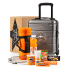 Inhoud Trolley 14" grijs, 30 x 20 x 40 cm Fleecedeken oranje, 160 x 125 cm RPET fles grijs, 500 ml Janzen handcrème Orange 77, 75 ml Vitamine Water mango-guave zero, 50 cl Pringles paprika, 40 gram Bifi mini, 10 gram Sultana fruitbiscuit bosvruchten, 43 gram Duyvis borrelnoten Provençale, 45 gram Tony’s Chocolonely melk karamel zeezout, 47 gram Verpakt in een feestelijke geschenkdoos, 490 x 390 x 200 mm