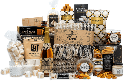 Maatwerk kerstpakketten mogelijk Veilig Achteraf Betalen Plan een showroomafspraak Veelzijdig assortiment kerstpakketten