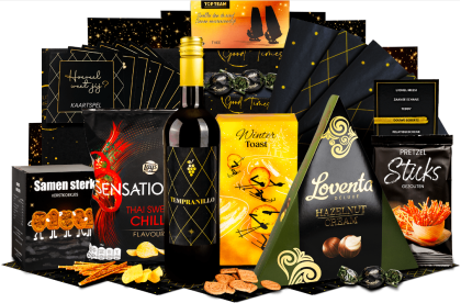 Maatwerk kerstpakketten mogelijk Veilig Achteraf Betalen Plan een showroomafspraak Veelzijdig assortiment kerstpakketten
