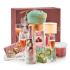 Inhoud Plaid ECO surf blue, 130 x 180 cm LED tafellamp roze, 13 x 13 x 20,5 cm Vierdelige set champagneglazen, 190 ml Jaume Serra Cava Rosato Bouquet, 75 cl Toast naturel, 75 gram Groene pesto kaas, 125 gram Meringue roze, 75 gram Suikerspin strawberry, 50 gram Chocolate & hazelnut cookies, 135 gram Truffels, 50 gram Verpakt in een feestelijke geschenkdoos, 490 x 390 x 200 mm