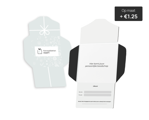 Kies je voor de cadeaubox? Dan bieden wij jou bij een bestelhoeveelheid vanaf 25 stuks de mogelijkheid om de luxe giftbox te laten verpakken in een gezellige wikkel met jullie bedrijfslogo. Bovendien kunnen wij de kerstkaart laten bedrukken met een door jullie aangeleverde kerstgroet en jullie bedrijfslogo voor een feestelijke en vertrouwde bedrijfsuitstraling. De meerprijs hiervoor bedraagt €1,25 per stuk. De cadeauboxen kunnen wij verzenden naar jullie bedrijfslocatie of naar de huisadressen van de ontvangers.